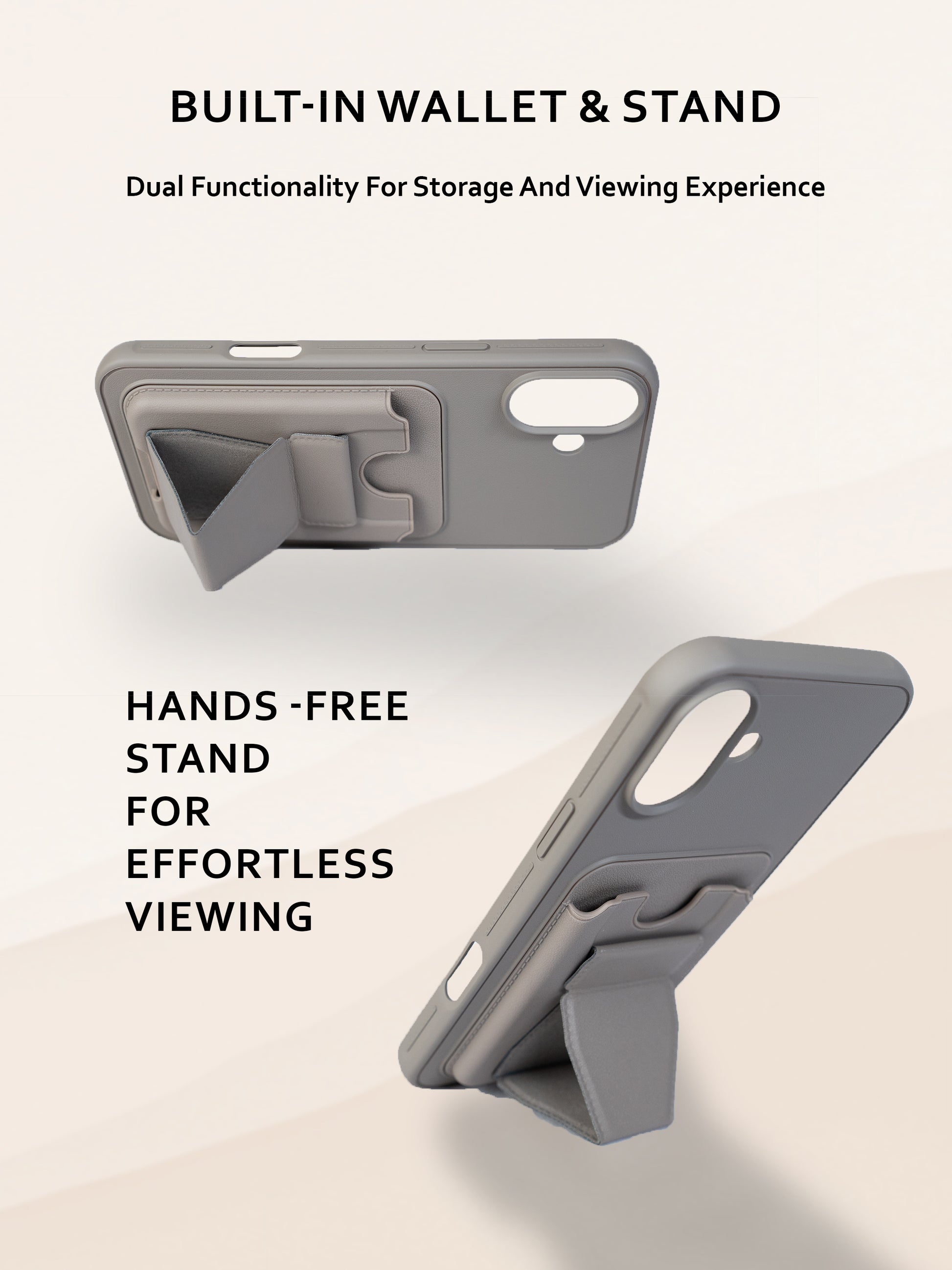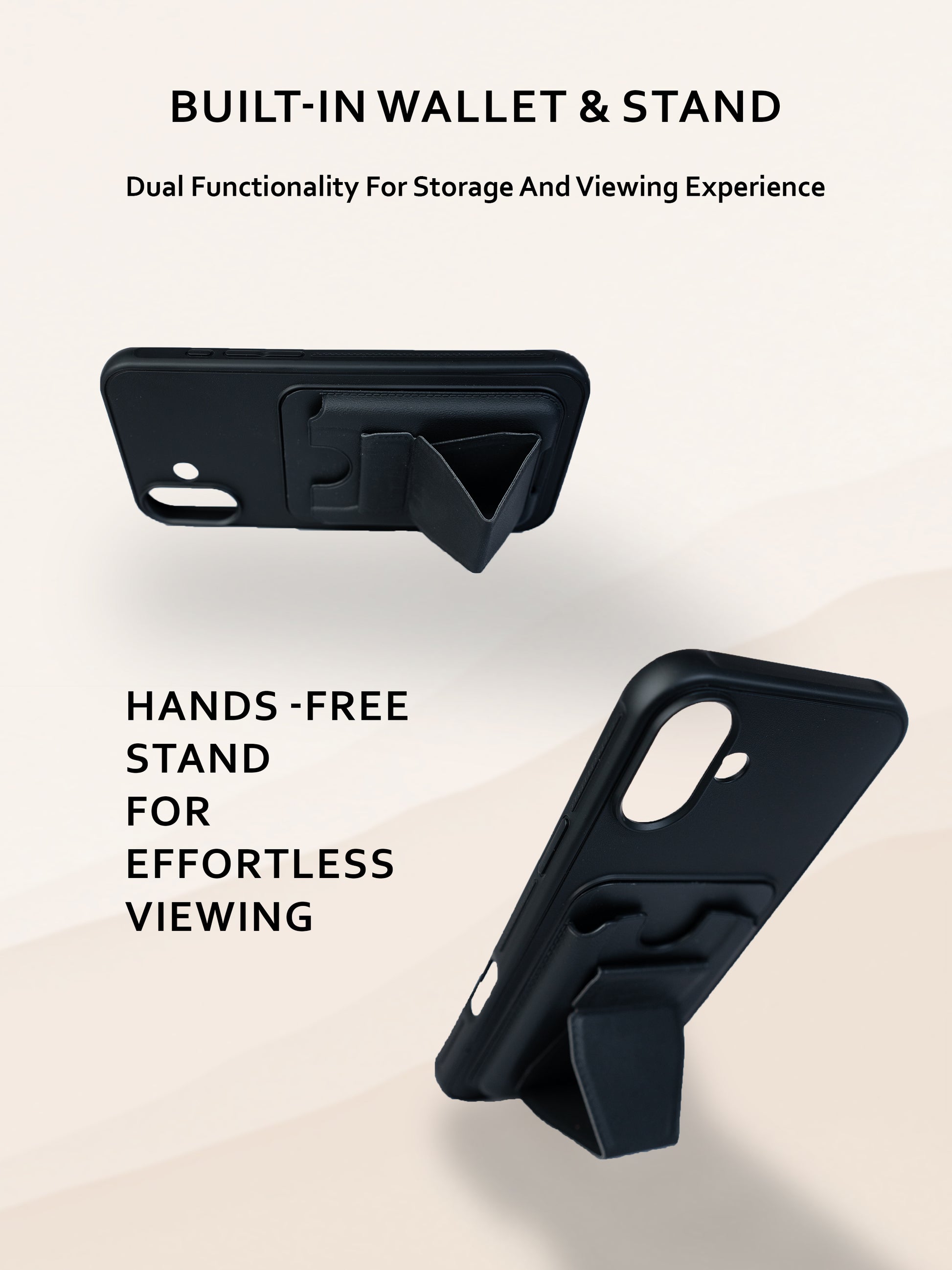 Upgrade your Phone with this stylish Leather Look Stand Case featuring a built-in flexible stand and attached card holder for everyday convenience. Designed for both protection and practicality, this case combines a premium leather-like finish with a sleek design that offers a comfortable grip and elegant look.