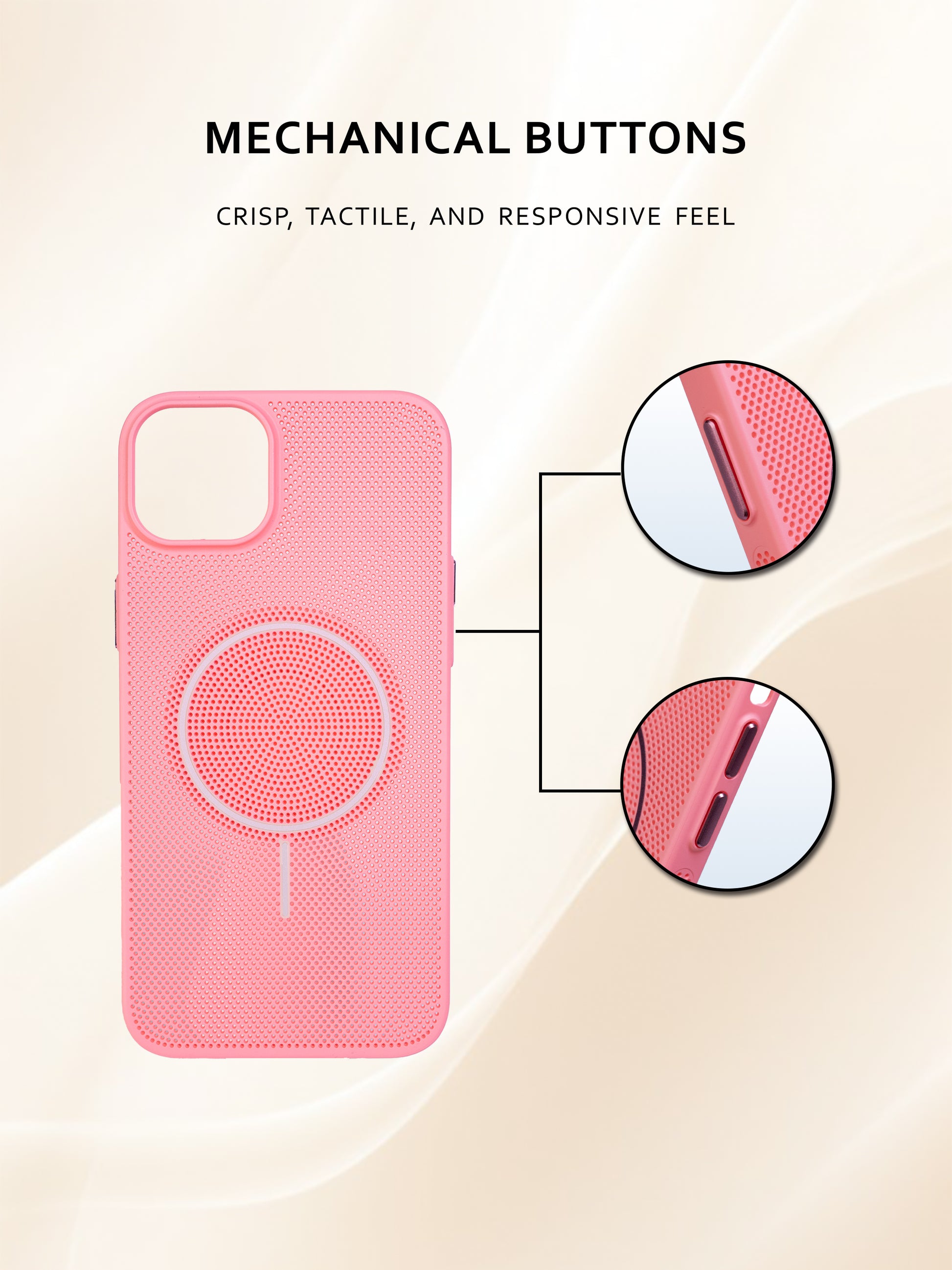 Give your Phone a stylish and protective upgrade with this Candy Color Netted Back Cover featuring premium metallic buttons and MagSafe compatibility. Designed in trendy candy shades, this case combines fashion with functionality. The sleek, net-textured design ensures a non-slip grip, while the raised camera bulge provides all-round protection against scratches and drops.