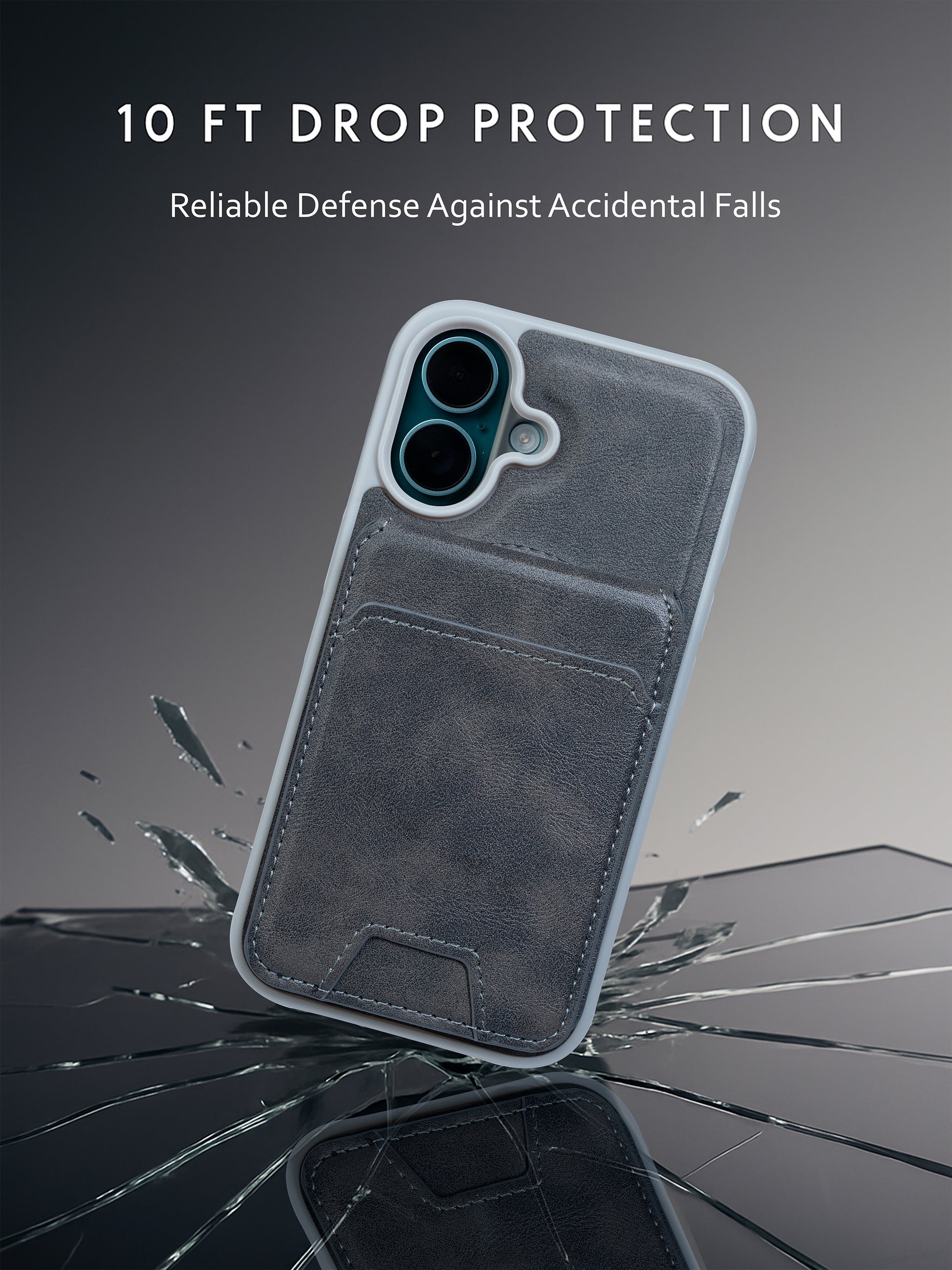 This case comes with an additional detachable MagSafe leather wallet that magnetically attaches to the back of the case. The wallet is super-compact and features 3 dedicated slots for your cards, IDs, or cash, making it a practical choice for everyday use.