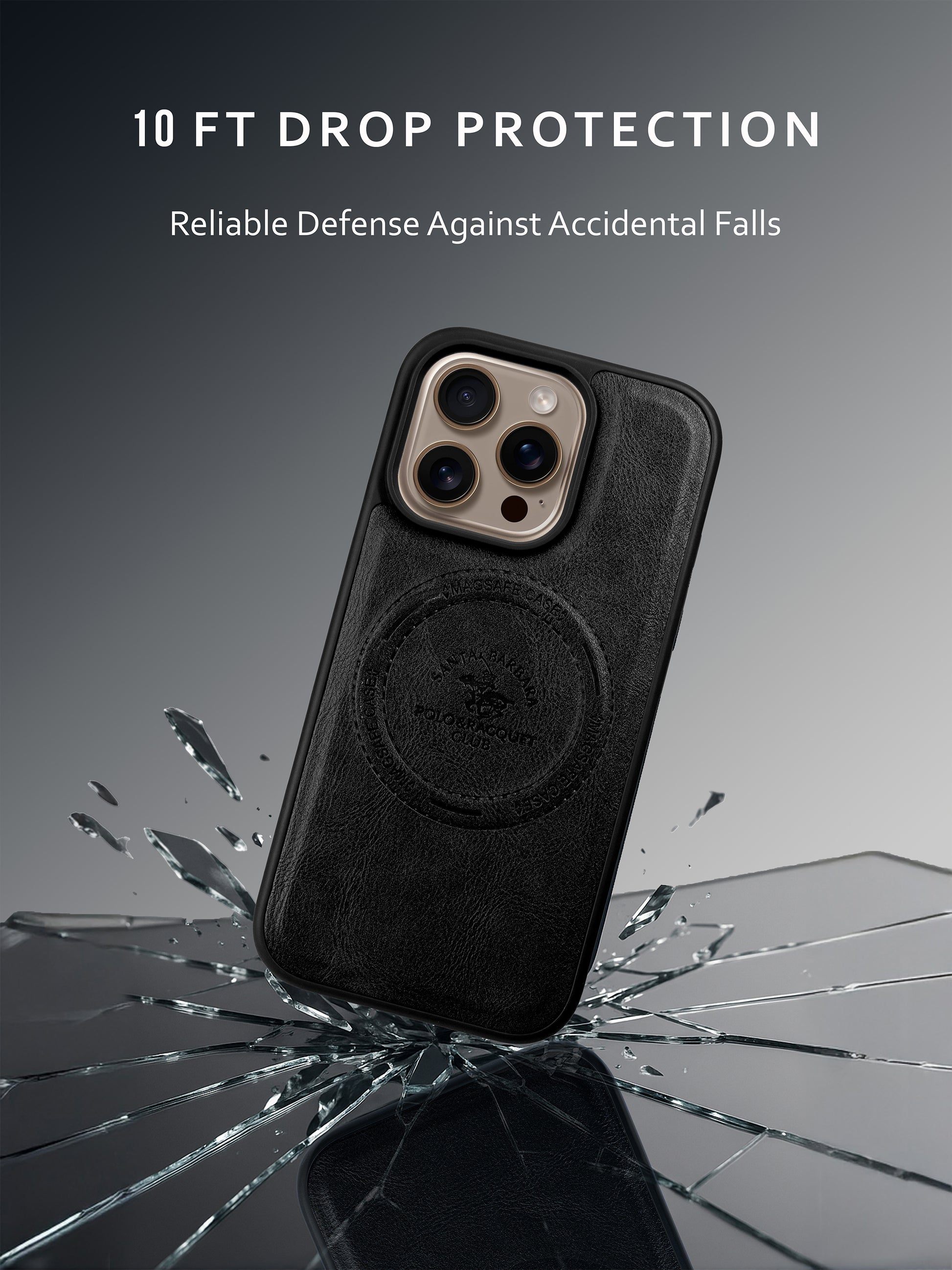Elevate your phone’s style and protection with the Santa Barbara Polo & Racquet Club Premium Leather MagSafe Case. Designed with precision and luxury in mind, this case combines functionality with elegance. Crafted from premium leather, it provides a sophisticated look while ensuring long-lasting durability.