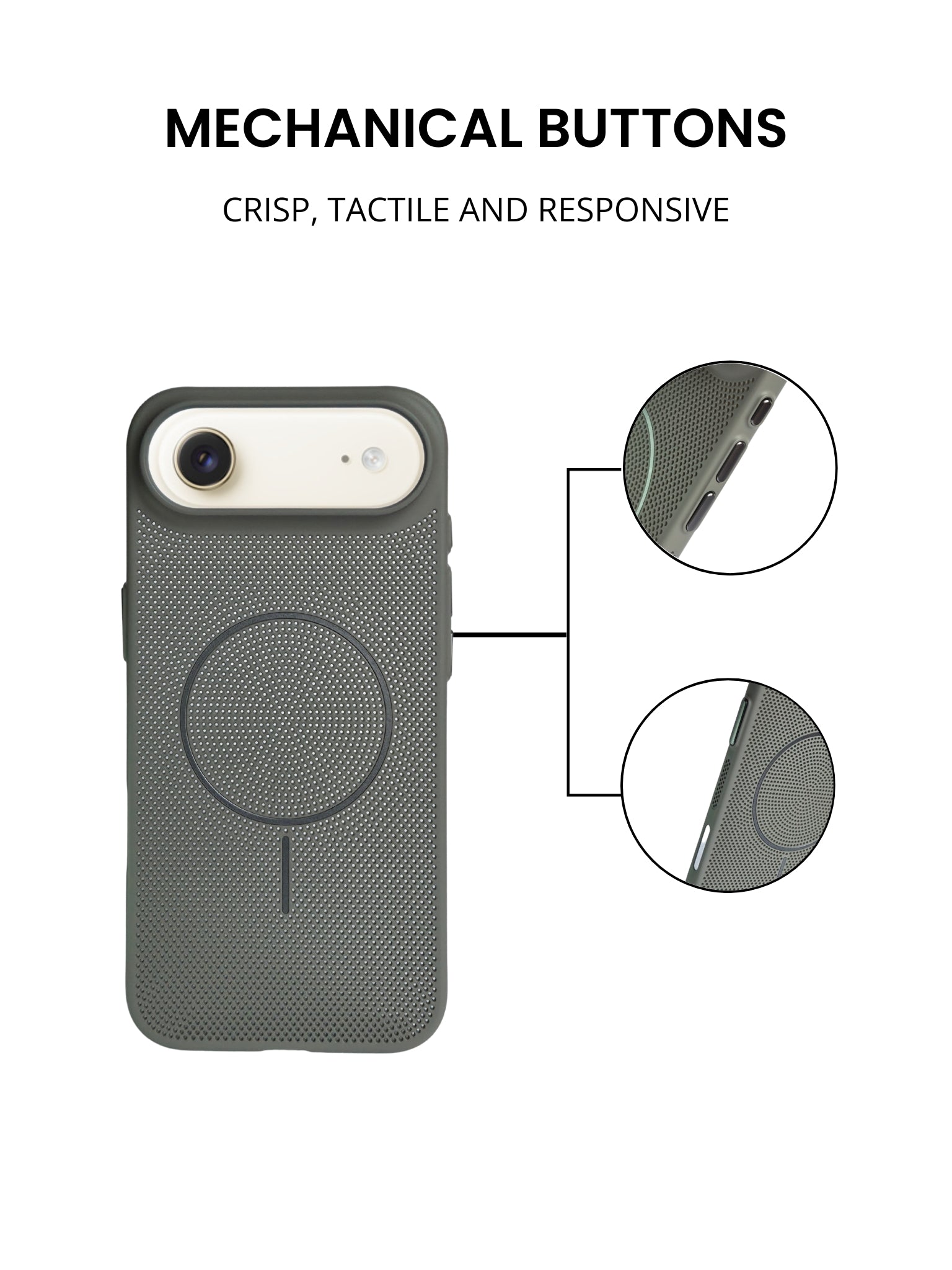Give your Phone a stylish and protective upgrade with this Candy Color Netted Back Cover featuring premium metallic buttons and MagSafe compatibility. Designed in trendy candy shades, this case combines fashion with functionality. The sleek, net-textured design ensures a non-slip grip, while the raised camera bulge provides all-round protection against scratches and drops.