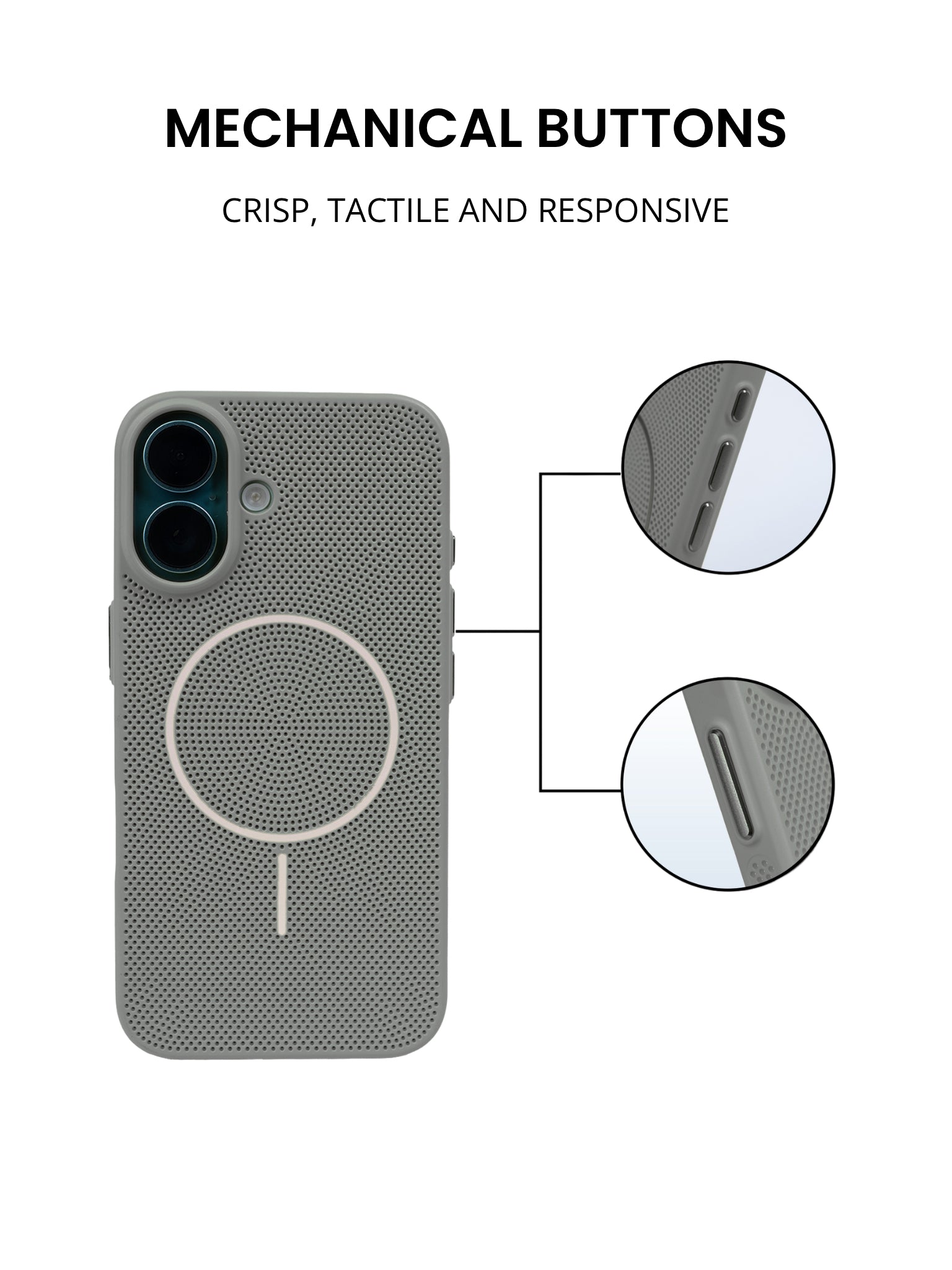 Give your Phone a stylish and protective upgrade with this Candy Color Netted Back Cover featuring premium metallic buttons and MagSafe compatibility. Designed in trendy candy shades, this case combines fashion with functionality. The sleek, net-textured design ensures a non-slip grip, while the raised camera bulge provides all-round protection against scratches and drops.